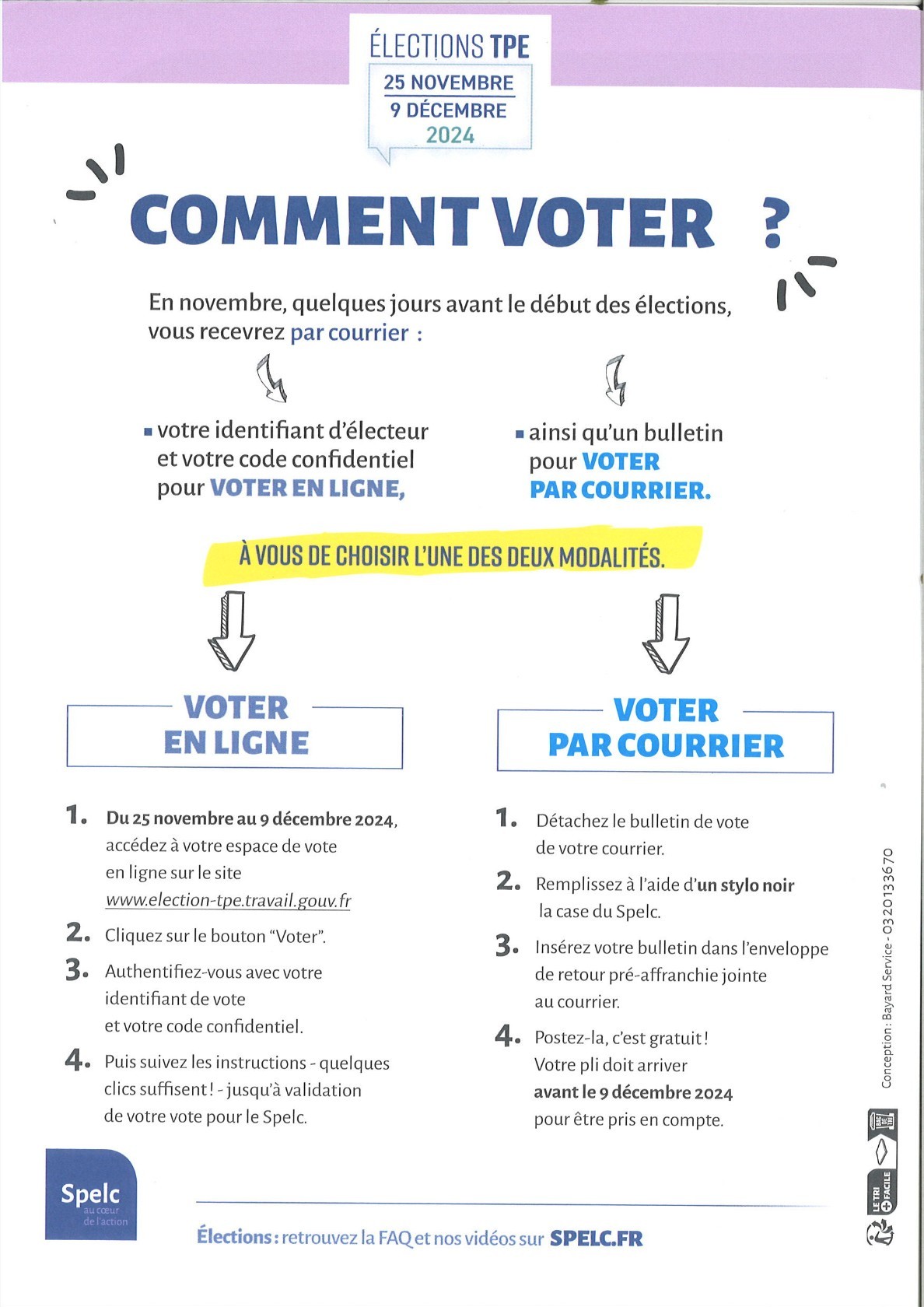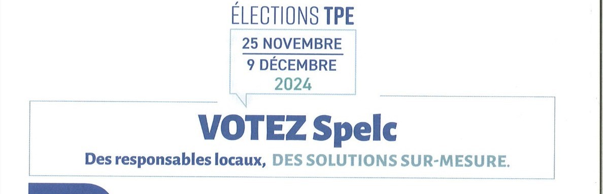 Votez SPELC aux prochaines élections TPE (Très Petite Entreprise) qui auront lieu du 25 novembre au 09 décembre 2024.